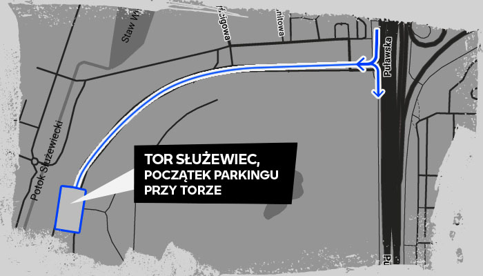 Wjazd / wyjazd od ul. Puławskiej w al. Wyścigową i dalej